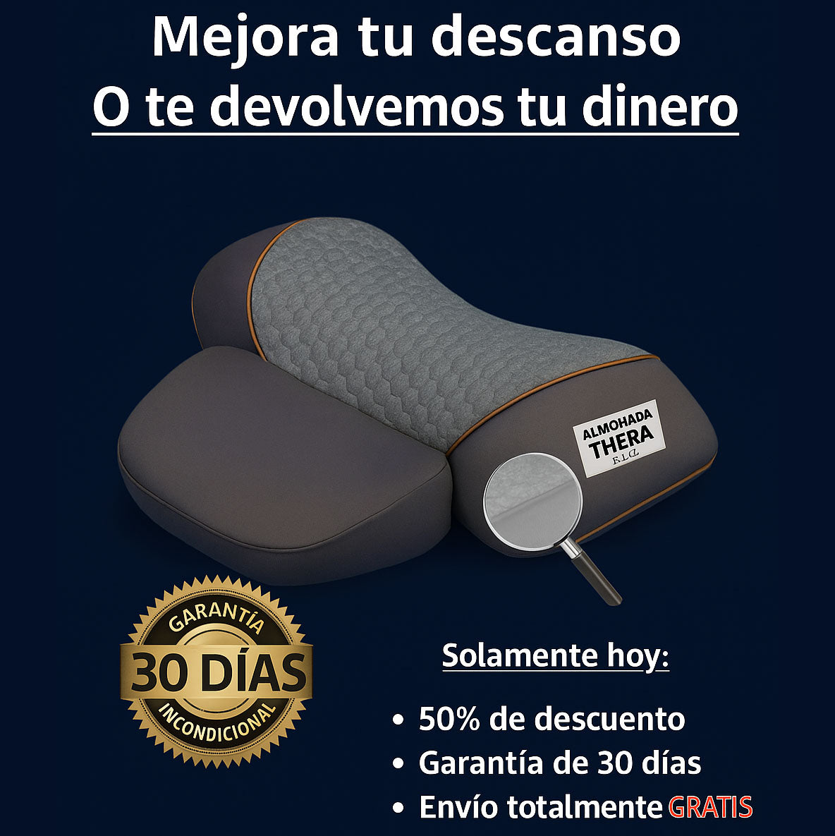 La Almohada Thera Elite™ tiene una alta probabilidad de ayudarte a aliviar el dolor de cuello 😌 desde el primer uso, incluso si ya has probado almohadas ortopédicas, masajes o analgésicos sin éxito.