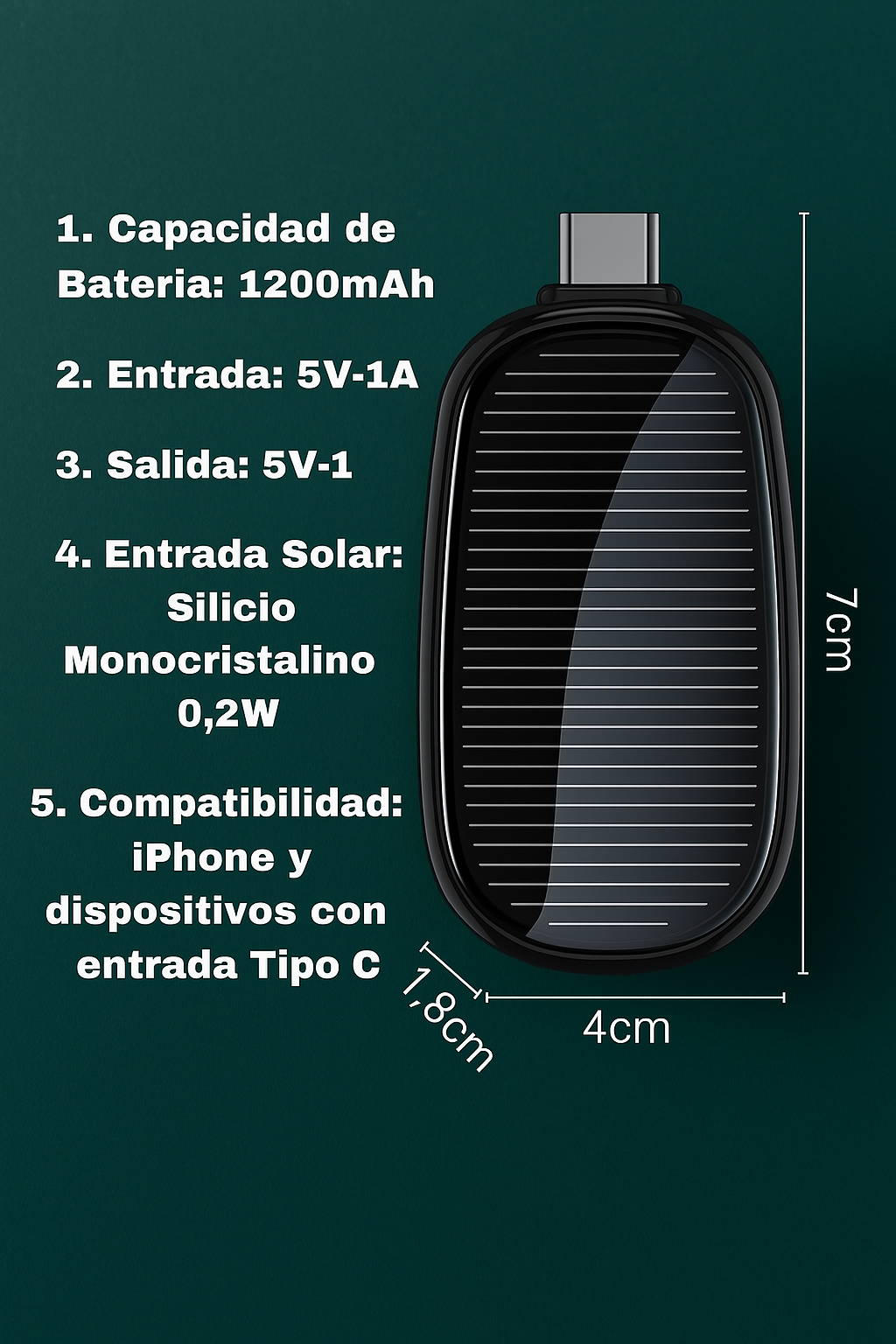 Diseñado para ofrecerte carga rápida y práctica en cualquier lugar, este mini cargador solar portátil combina potencia y funcionalidad.